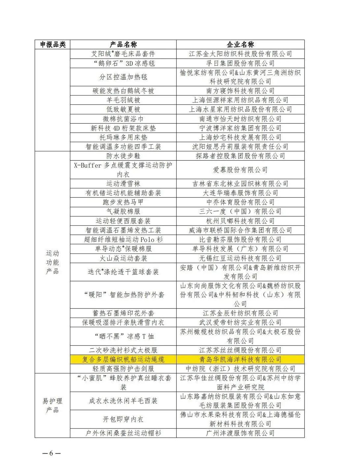 2022年度十大類紡織創(chuàng)新產(chǎn)品獲選產(chǎn)品及單位名單(部分)