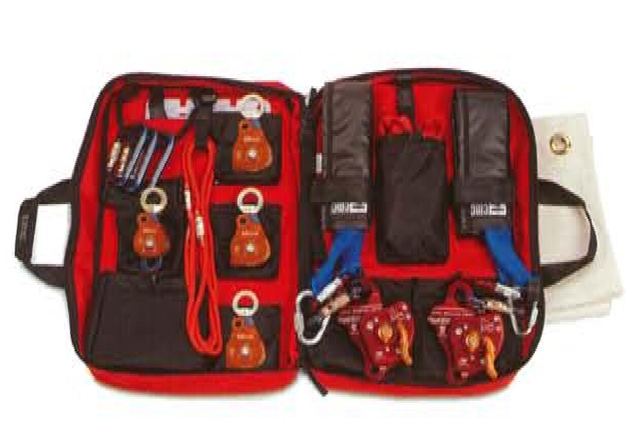 器材包不僅僅用于儲存器材,方便攜帶,更重要的是用于器材的組裝,保證器材時刻處于可裝配的待命狀態(tài)。舉個例子,錨裝備可以放一個包里,主繩和附屬硬件放一個包里,保護系統(tǒng)的繩索和器材放第三個包里。換句話說組裝一個包內(nèi)的裝備,就可以組裝成主繩或保護繩系統(tǒng)。其目的就是救援所需的裝備都能第一時間到達現(xiàn)場,然后所有器材都能進行快速組裝。